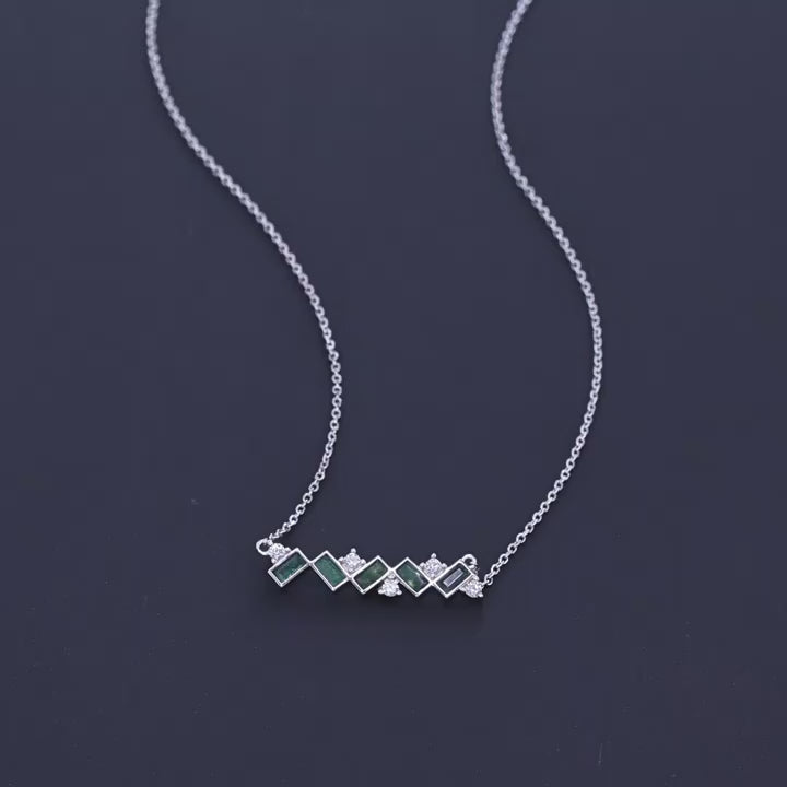 This 925 sterling silver necklace reimagines nature as modern art: five angled rectangle moss agates, their green veining swirling like a forest stream forced into bold lines, are dotted with CZ βdew drops.β Each agate is a one - of - a - kind relicβno two share the same wild pattern. The polished cable chain and asymmetric design catch light like a city skyline, turning the untamed into wearable elegance. Light enough for daily hustle, yet rich in whispered rebellion, itβs a love letter to those who see beauty in the clash of nature and geometry.