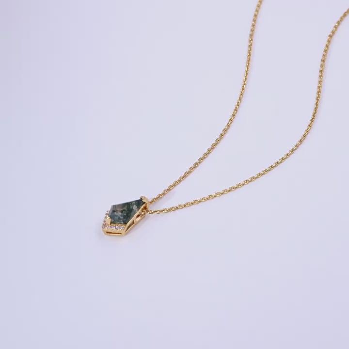 This 10K gold - plated necklace is a bold statement: a kite - shaped moss agate, its green veins swirling like a secret woodland trapped in gemstone, sits atop a diamond - like CZ halo. The polished O - link chain glows with warm gold, framing the pendant’s architectural edge. Every agate is one - of - a - kind—your necklace carries a unique fragment of nature’s soul. Light enough for daily adventures, yet radiant enough to steal the spotlight, it’s a love letter to those who crave modern elegance with a whisper of the wild.