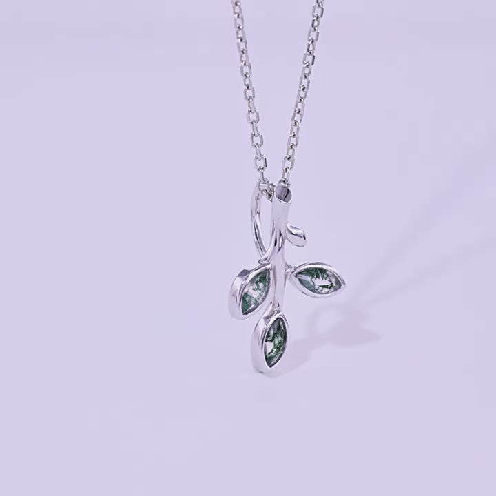 This 925 sterling silver necklace captures a moment of wild growth: three marquise - cut moss agates, their green veins mimicking sun - dappled leaves, cling to a polished silver branch. Each agate is a one - of - a - kind relic—no two share the same “leaf pattern.” The delicate O - link chain flows like a gentle breeze, letting the branch - like pendant rest softly on your collarbone. Light enough for daily adventures, yet rich in whispered nature tales, it’s a reminder that beauty grows quietly—just like the forest itself. Wear it as your personal piece of woodland poetry.