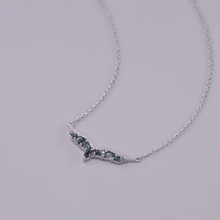V - Shaped Necklace with Marquise Cut Moss Agate & CZ Accents